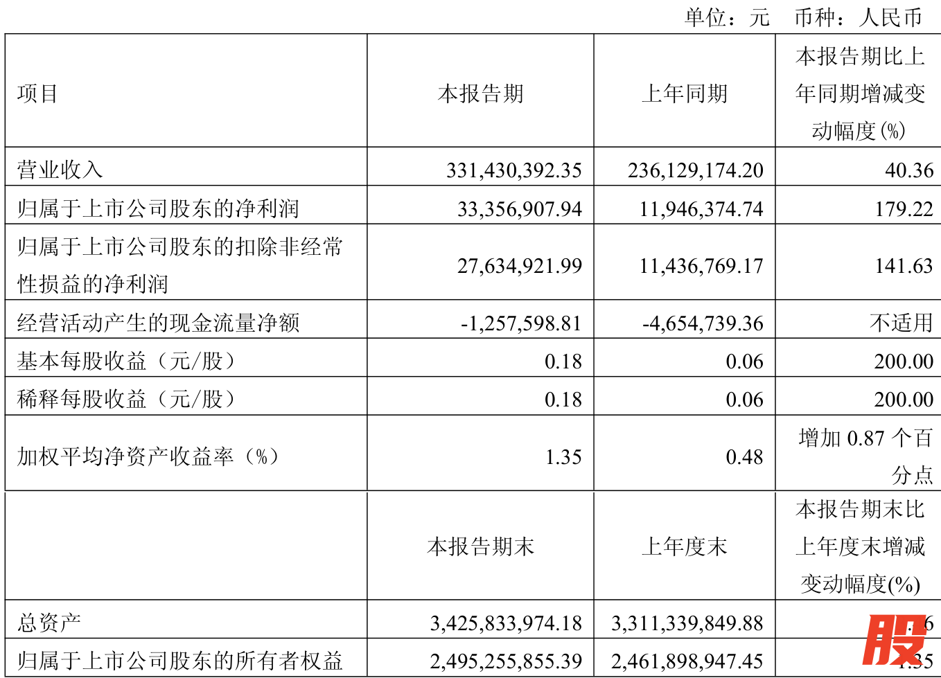 中证智能财讯越剑智能(603095)4月26日披露2025年第一季度报告。公司实现营业总收入3.31亿元,同比增长40.36%;归母净利润3335.69万元,同比增长179.22%;扣非净利润2763.49万元,同比增长141.63%;经营活动产生的现金流量净额为-125.76万元,上年同期为-465.47万元;报告期内,越剑智能基本每股收益为0.18元,加权平均净资产收益率为1.35%。