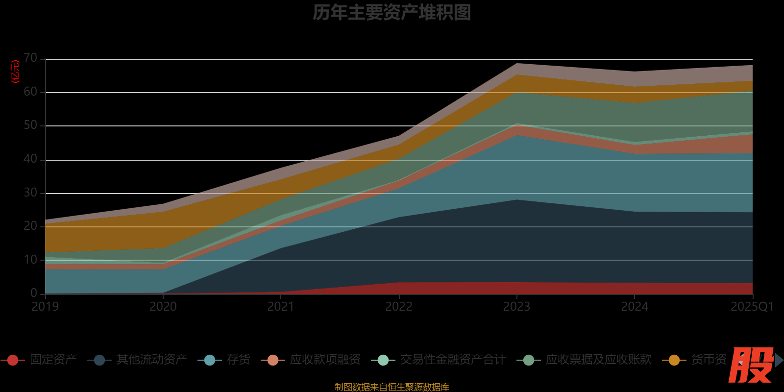 资产重大变化方面,截至2025年一季度末,公司应收款项融资较上年末增加115.34%,占公司总资产比重上升4.3个百分点;货币资金较上年末减少39.88%,占公司总资产比重下降3.05个百分点;其他流动资产较上年末减少0.22%,占公司总资产比重下降0.98个百分点;固定资产较上年末减少3.9%,占公司总资产比重下降0.33个百分点。
