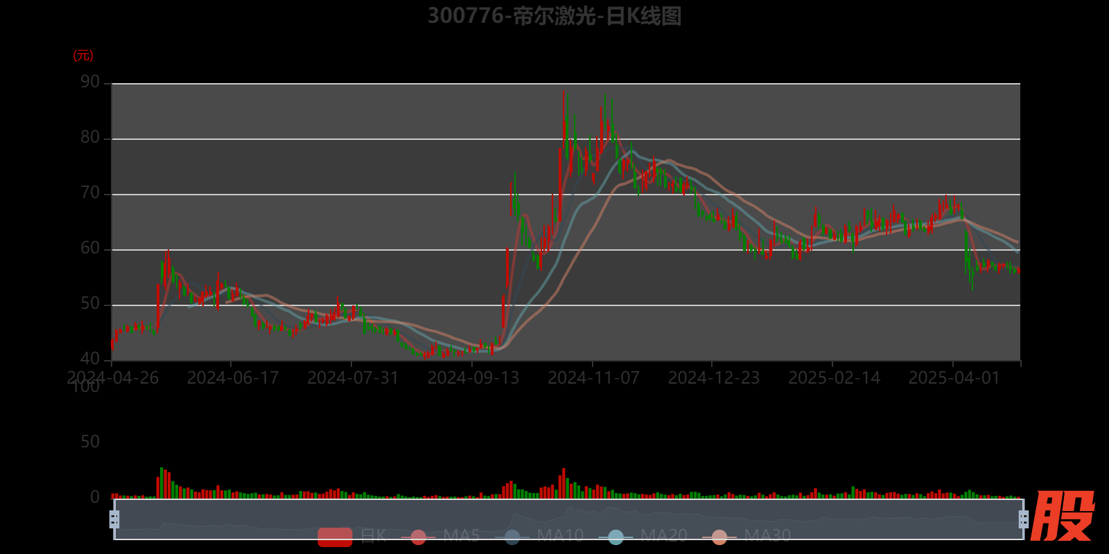 以4月25日收盘价计算,帝尔激光目前市盈率(TTM)约为27.78倍,市净率(LF)约4.23倍,市销率(TTM)约7.26倍。